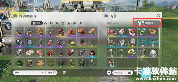 1、唤出背包后,点击右上角的【简易制作】
