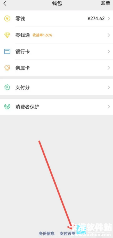 3、在钱包页面的底部我们能找到支付设置