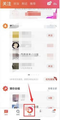 2、登录成功后点击首页下面中间的K歌。