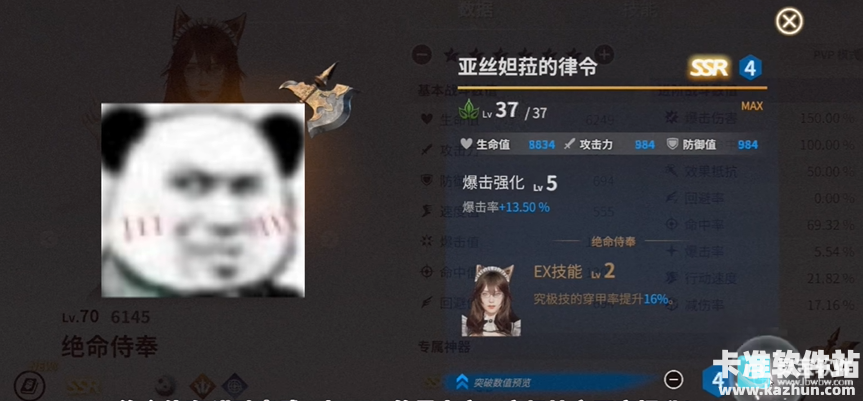 PVP 需要堆速度,先手放究极技上状态,伤害会缩水不少,且只能追击生命最高的一个角色,比较一般大概T1水平