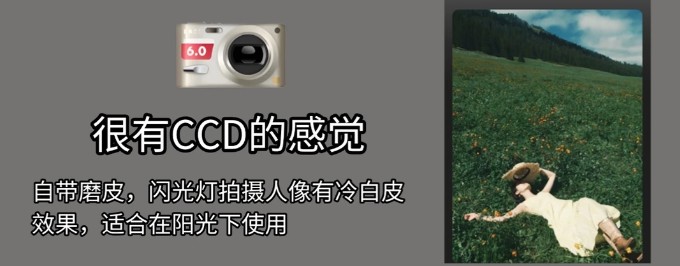 自带磨皮,闪光灯拍摄人像有冷自皮效果,适合在阳光下使用