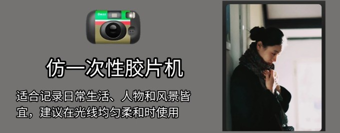 适合记录日常生活、人物和风景皆宜,建议在光线均匀柔和时使用