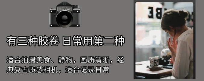 适合拍摄美食、静物,画质清晰。经典复古质感相机,适合记录日常