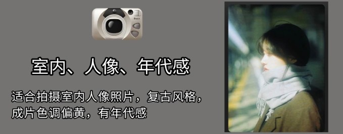 适合拍摄室内人像照片,复古风格,成片色调偏黄,有年代感