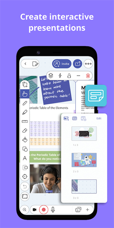 使用无限的画布创建幻灯片,使用激光指针,绘制任何颜色,添加形状,文本,视频,图像和音频文件