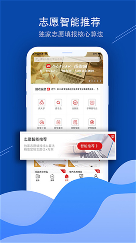 1、志愿智能推荐:独家志愿填报核心算法。