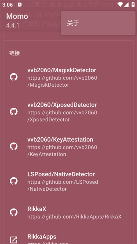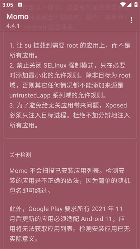 4、然后启动momo环境检测软件后提示环境有问题,检测出面具的隐藏root模块