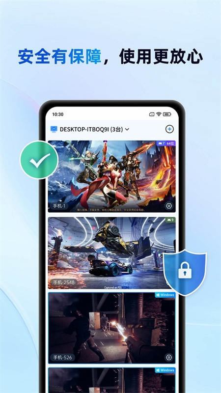 2、专为游戏玩家优化网络协议,支持手机端流畅运行PC端游,提供虚拟手柄映射与画质自适应功能,实现跨设备游戏体验。