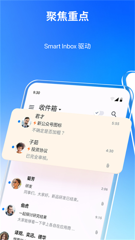 智能收件箱智能地将重要的信息发送到顶端。