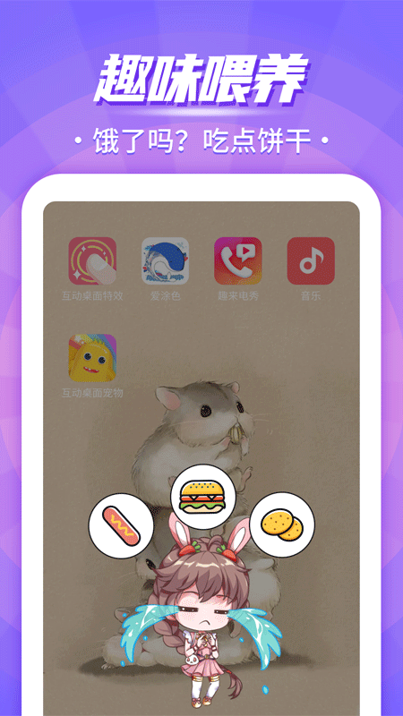 2、用户提供了各种形象的虚拟宠物,用户可以在手机桌面和它互动。