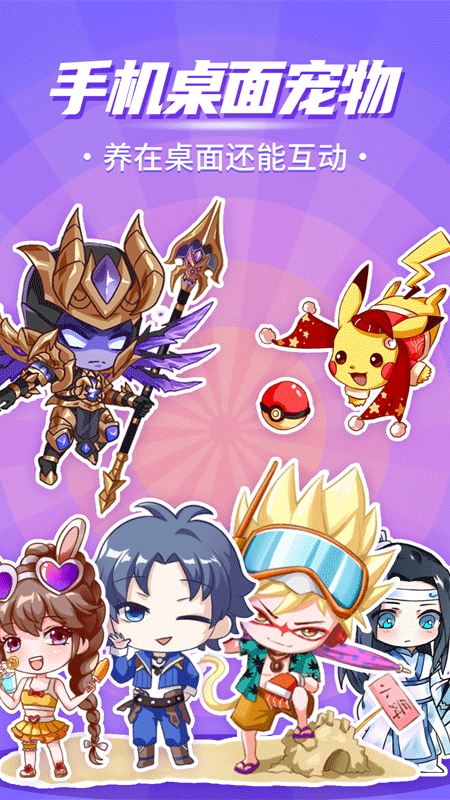 1、软件中可以将各种动漫的人物设置为手机桌面宠物,设置方法简单。