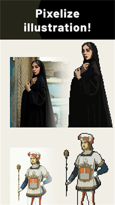 各种不同风格的模板自由的使用,全程没有任何的广告,特效模版丰富,操作简单,快速将照片生成像素风格,海量的模版可以自由的使用,支持细节微调,打造自己的专属像素作品。
