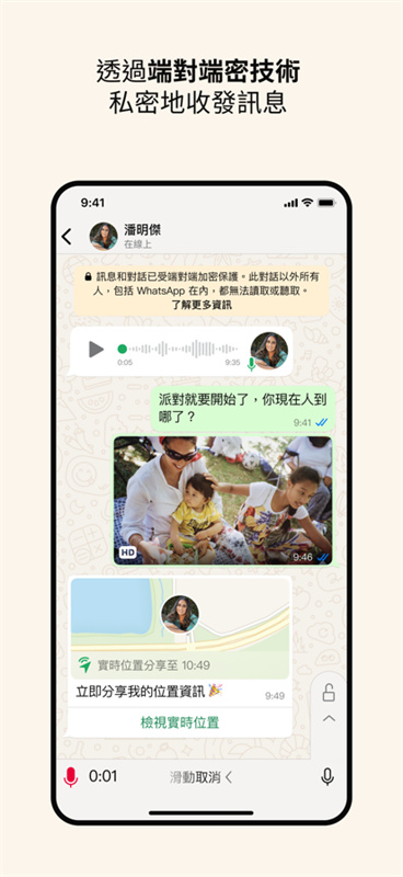 2、发送无限量的文字、图片、音频与视频,无需额外费用。