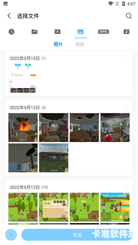 选择发送文件,首先选择文件类型。
