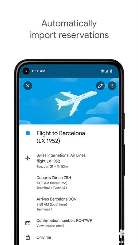 2、来自 Gmail 的活动 - 系统会将航班、酒店、音乐会及餐馆预订等活动自动添加到您的日历中。