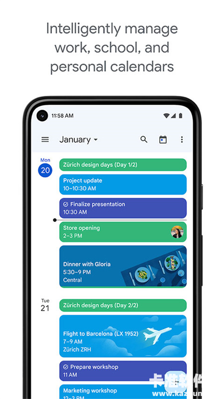 4、所有日历汇集一处,供您轻松查看 - Google 日历支持您手机上的所有日历,包括 Exchange。