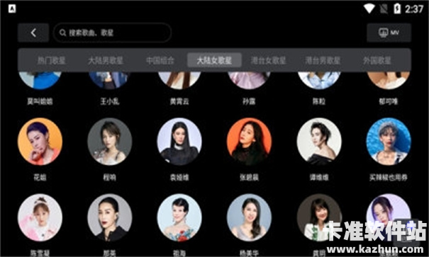 1、找到你喜欢的歌星,大部分歌曲是支持免费点歌和下载的