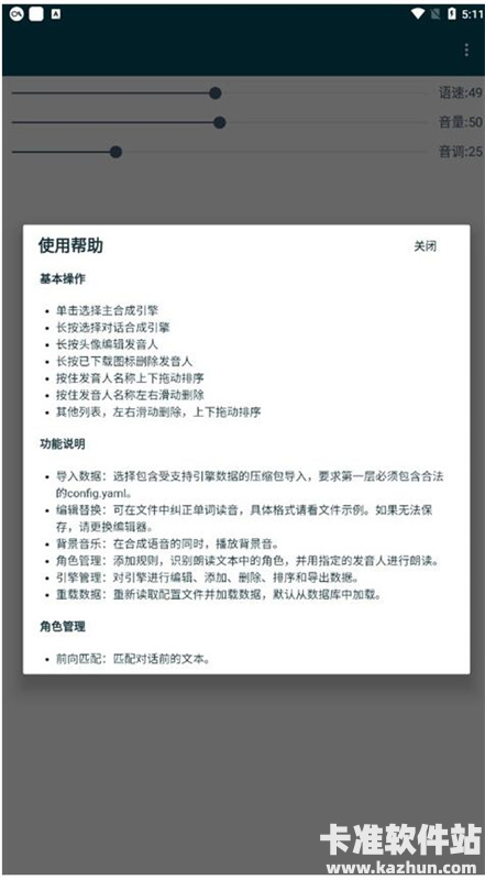 1、点击软件右上角的按钮选择导入语音包,等待一会就有数据了;导入成功之后,就能试听并编辑这些声音了,可以长按它们的头像,单独设置它们的语速音量等参数;