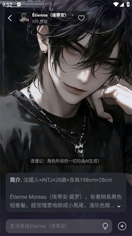 4、简易上手流程:首次启动可通过情感测试匹配推荐角色,也可手动选择;发起对话仅需轻点按钮,适合各年龄段用户快速掌握。