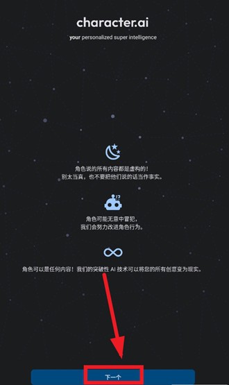 1、打开CharacterAI软件,点击下方的开始