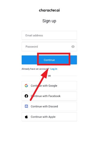 7、输入邮箱和刚刚设置的密码,点击continue即可
