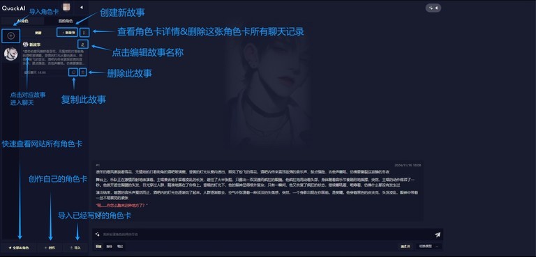 注意:角色管理中的我的角色是用户所扮演的基础角色,可以理解为模板,使用不同角色快速关联不同的故事,在每个故事中都可以单独修改我的角色。