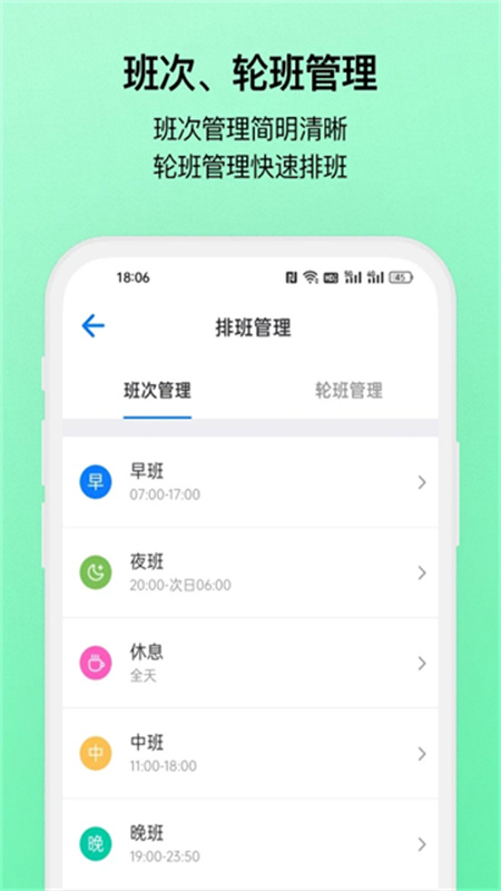 1、排班助手app下载安装免费版设定循环班,迅速产生排班表,使班排班一目了然。