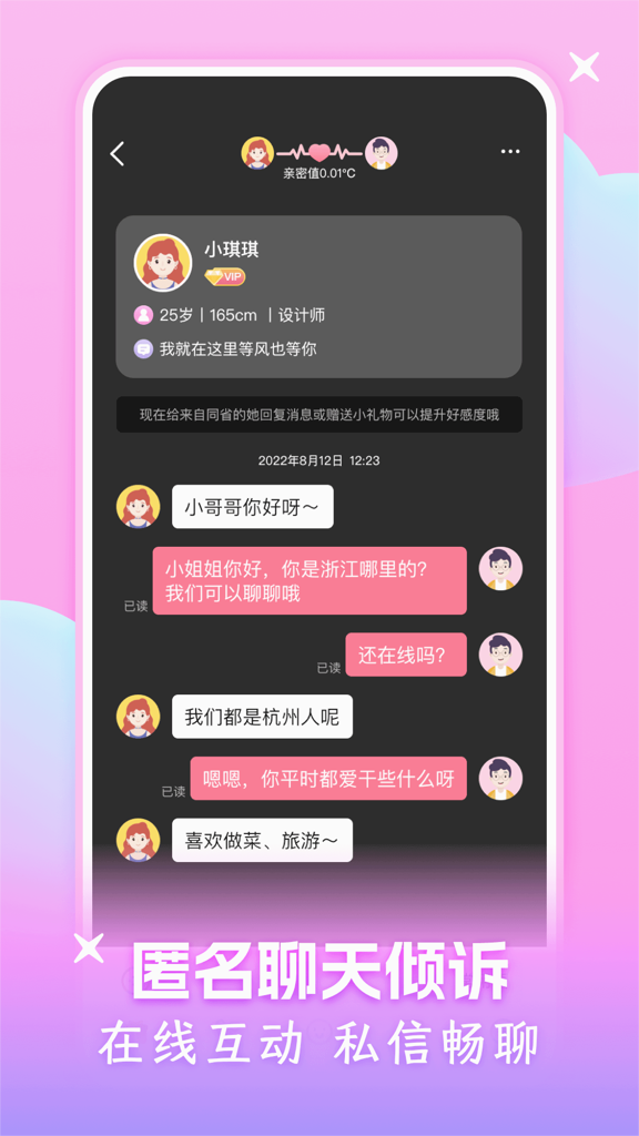 附近可聊APP官方版是一款基于地理位置的社交应用,致力于为用户打造安全、便捷的本地社交体验。通过智能算法,APP能精准匹配附近用户,帮助您快速结识新朋友,拓展社交网络。支持多种聊天模式,包括一对一私聊、群组讨论和兴趣社区,满足不同社交需求。此外,APP还提供动态分享功能,让用户随时记录生活点滴并与他人互动。严格的实名认证和隐私保护机制确保用户信息安全,让社交更放心。无论是寻找同城好友、线下活动伙伴,还是纯粹想找人聊天,附近可聊都是您的理想选择。