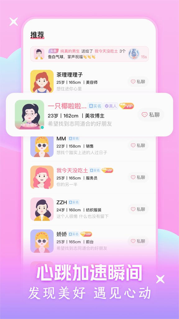 高效社交:通过地理位置和兴趣双重筛选,快速找到匹配度高的聊天对象,节省时间成本。2. 安全可靠:采用多层身份验证和举报机制,有效减少虚假账号和不良信息干扰。3. 功能全面:从即时聊天到动态分享再到线下活动,覆盖各类社交场景需求。4. 隐私优先:用户可自主控制信息可见范围,匿名模式让社交更轻松无压力。5. 本地化服务:特别适合想拓展同城人脉或了解周边资讯的用户群体。6. 持续创新:开发团队根据用户反馈定期优化功能,保持应用活力和竞争力。