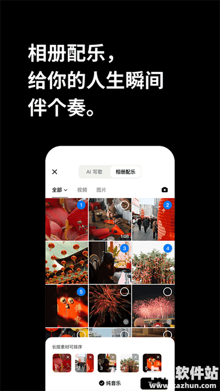 随时随地上传图片即可生成歌曲,为你的人生瞬间配乐,创造独特音乐体验。