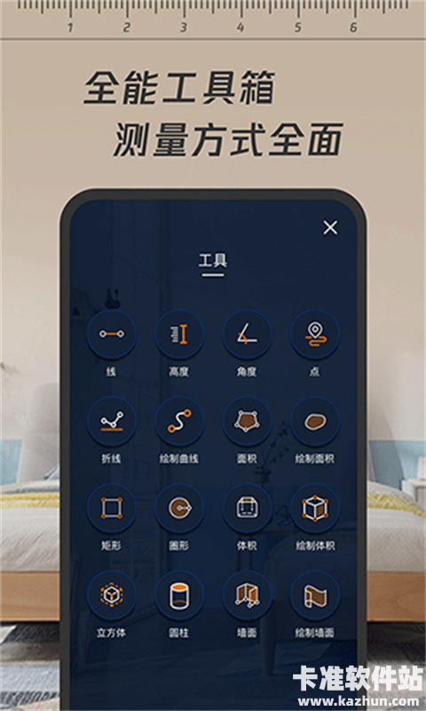 1、一键测距可以让您快速测量真实物体的尺寸以及人的身高,测量大型物体时自动显示参考线,使测量过程更容易,结果更准确,将光标