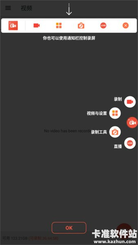 4、如果想进行录屏操作,需要点按界面中箭头指向的录像机标志。