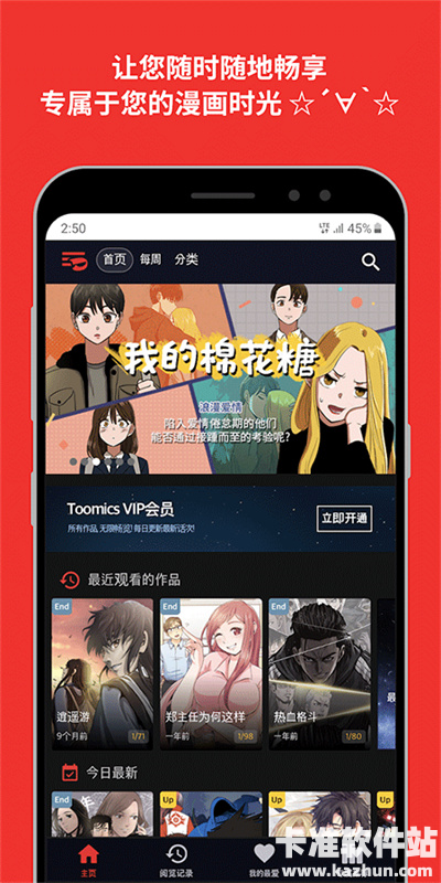 Toomics韩漫还支持跨平台同步功能,用户可以在手机、平板、网页上同步和保存自己的阅读进度,方便快捷。另外,整个app广告推送也很少,用户在阅读的过程中没有广告弹窗的打扰,可以让用户拥有良好的阅读体验。