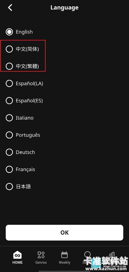 3、最后在语言列表中找到中文即可