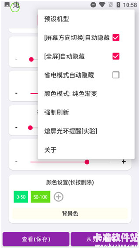 6、还可以设置省电模式、颜色模式、屏幕自动切换等自动隐藏功能。