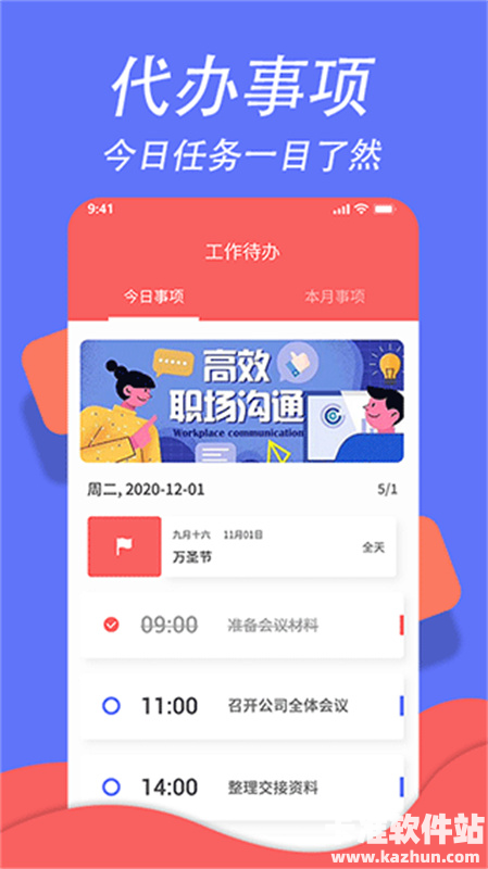 2、日历视图:可随时查看你所有的日历,在日期之间迅速切换查看所有日程计划