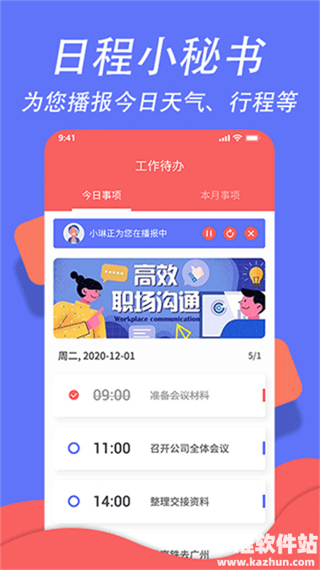 3、语音播报提醒:设定提醒时间后,会在每天特定的时间通过语音播报提醒你需要去完成的日程和事项