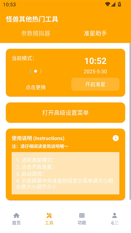提供游戏准星辅助功能,支持选择准星模式、开启准星后,启动游戏时长按屏幕中央按钮可调节准星大小和长度。