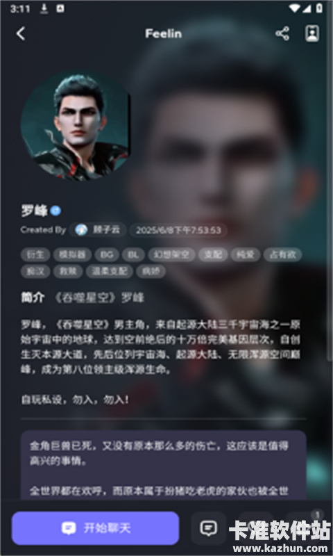 4、角色设定自由:用户可以根据个人喜好自由设定角色的性格特征、背景故事和对话风格。