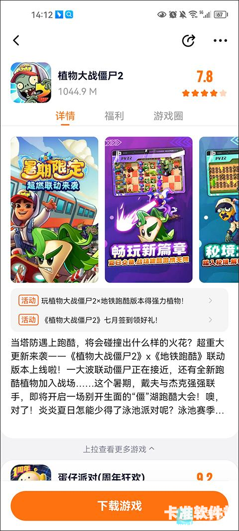 2、选中植物大战僵尸2,进入游戏介绍界面,这里有详细的攻略和游戏圈,随时都可开始游戏;