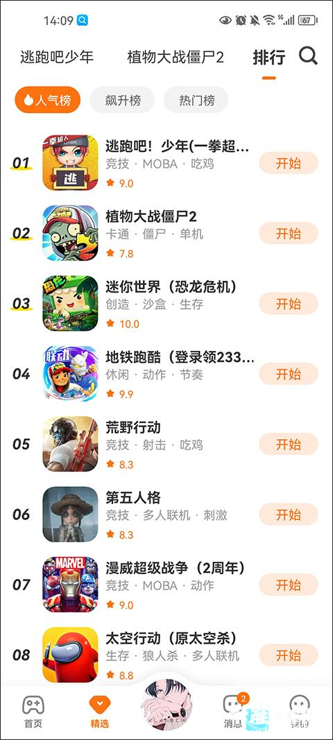 4、不管你是想体验近期热门的小游戏之外,还是想看看下载次数最多的游戏,都可以通过排行榜进行查看。