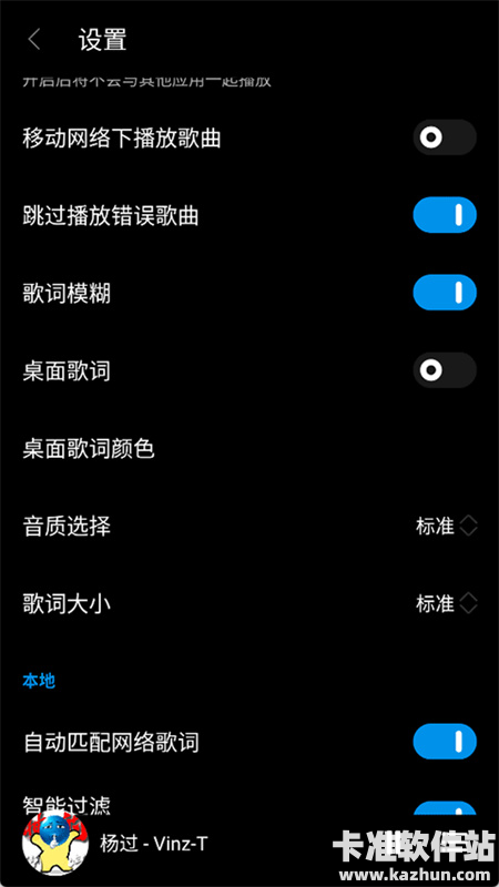 实时滚动歌词精准匹配节奏;内置中英双语歌词翻译;支持开启/关闭歌词背景模糊效果,适配不同视觉场景。