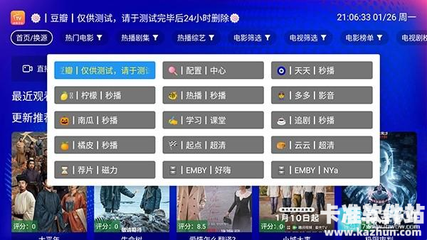 1、软件自带影视配置接口,进入后,点击主页选项可以切换影视源接口。