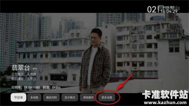 1、打开aktv电视app后,在屏幕的左边连续点击“确认”几次,右下角就会出现弹窗,点击“更多设置”;