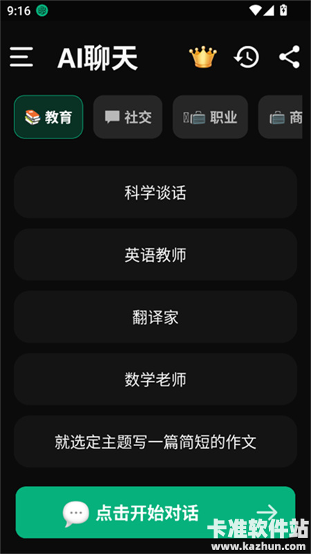 4、进入某个模板的详细介绍页面后,点击“开始对话”即可。