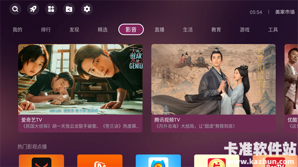 4、精品集结,让电视成为家庭娱乐中心的效果发挥到极致。近千款电视专属版应用收录于此,电视装机必备!