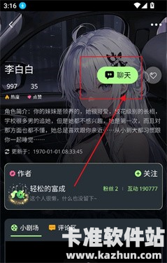 4、根据搜索结果,进入喜欢的角色页面,点击聊天