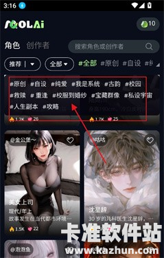 2、或者筛选角色标签,精准定位喜欢的角色