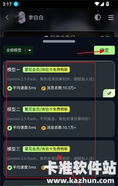 6、可以勾选喜欢的对话模型,全部模型均免费,勾选成功,点击确定,返回对话界面