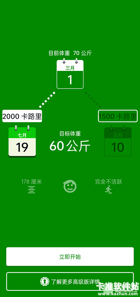 2、填写你的身高、体重、运动量等信息,立即开始;